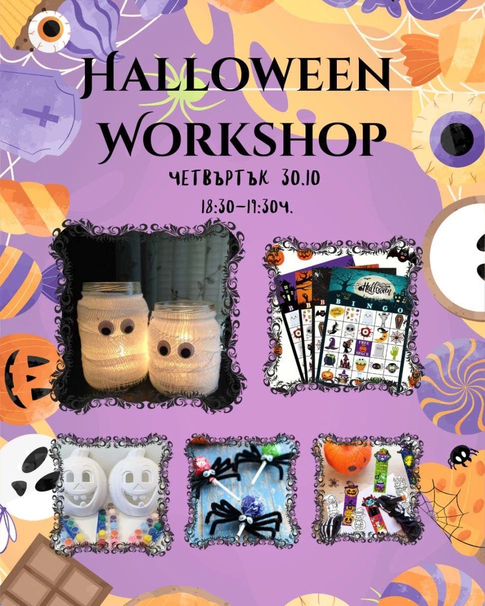 На 30 октомври/четвъртък/, от 18:30 до 19:30 ч., те каним на нашата любима традиционна Хелоуин работилница – събитие, което организираме всяка година с много вдъхновение, усмивки и магия!